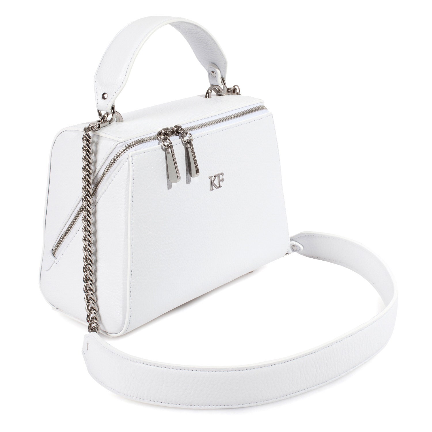 Leather Top Handle Bag, White Leather Handbag Top Handle, Women's Leather Bag KF-3553