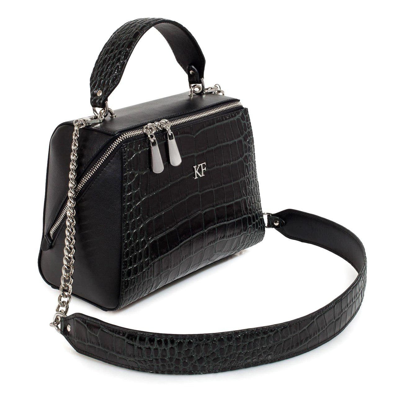 Leather Top Handle Bag, Black/Green Leather Handbag Top Handle, Women's Leather Bag KF-3180