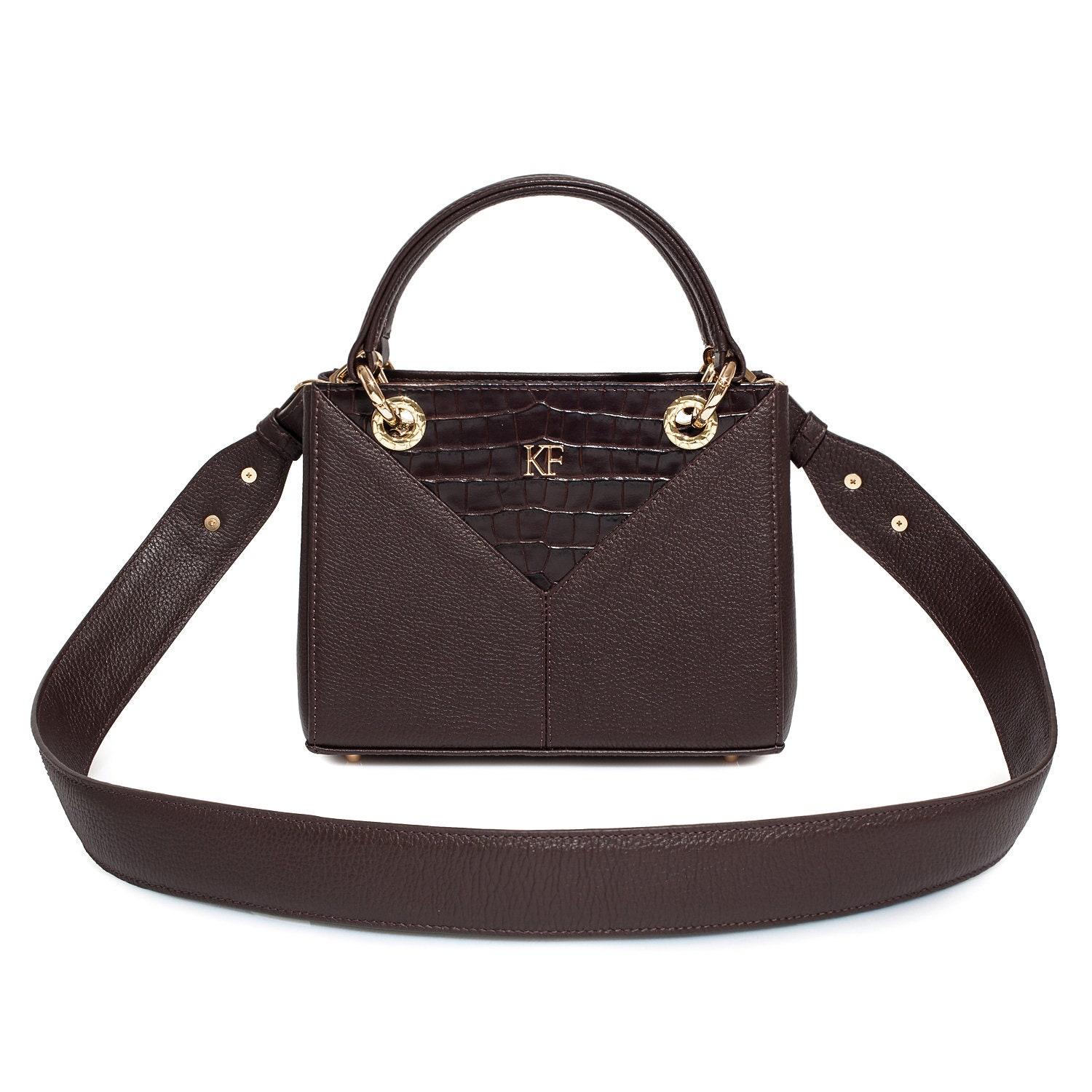 Leather Top Handle Bag, Dark brown Leather Handbag Top Handle, Women's Leather Bag KF-3828