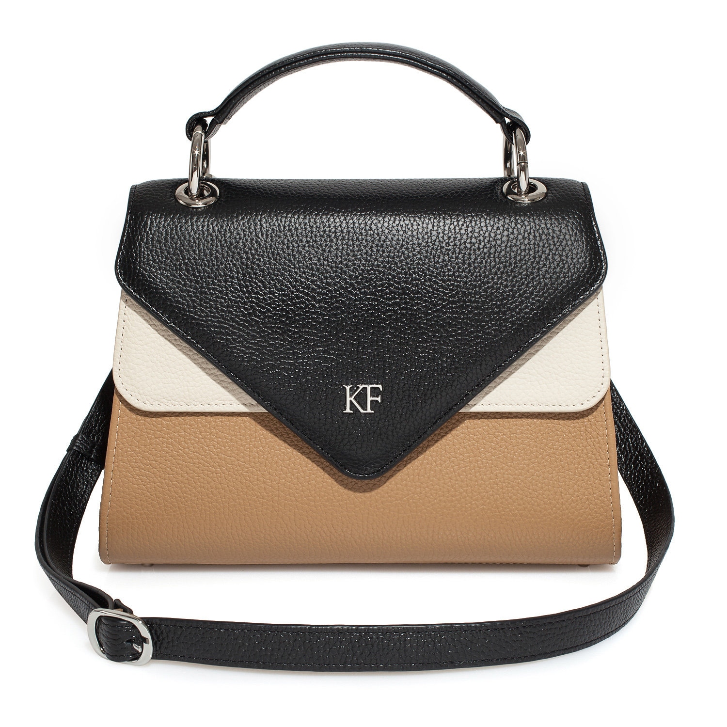 Leather Top Handle Bag, Cream Leather Handbag Top Handle, Women's Leather Bag KF-4892