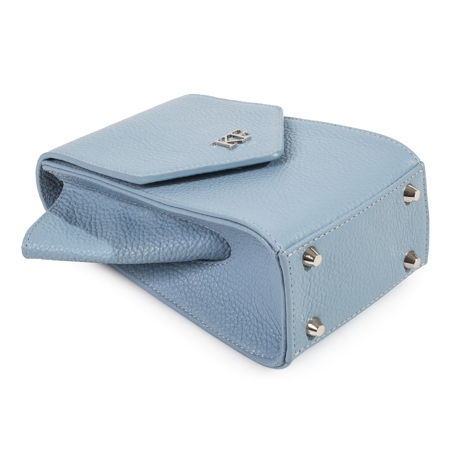 Blue genuine leather woman crossbody bag from ukrainian designer Katerina Fox. Fashionable and elegant modern bag KF for bright girls and women. This bag is able to attract attention and highlight your exquisite taste. All accessories for Katerina Fox bags makes the same factory as for Michael §¬ors, Calvin Klein, DKNY and other famous brands.The internal space of a bag is equipped with one spacious compartment, four patch pockets for cards. The bag is closed on the button-magnet. The bag has a short removable handle on wrist.The length of the strap is adjustable. The kit also includes a storage bag.