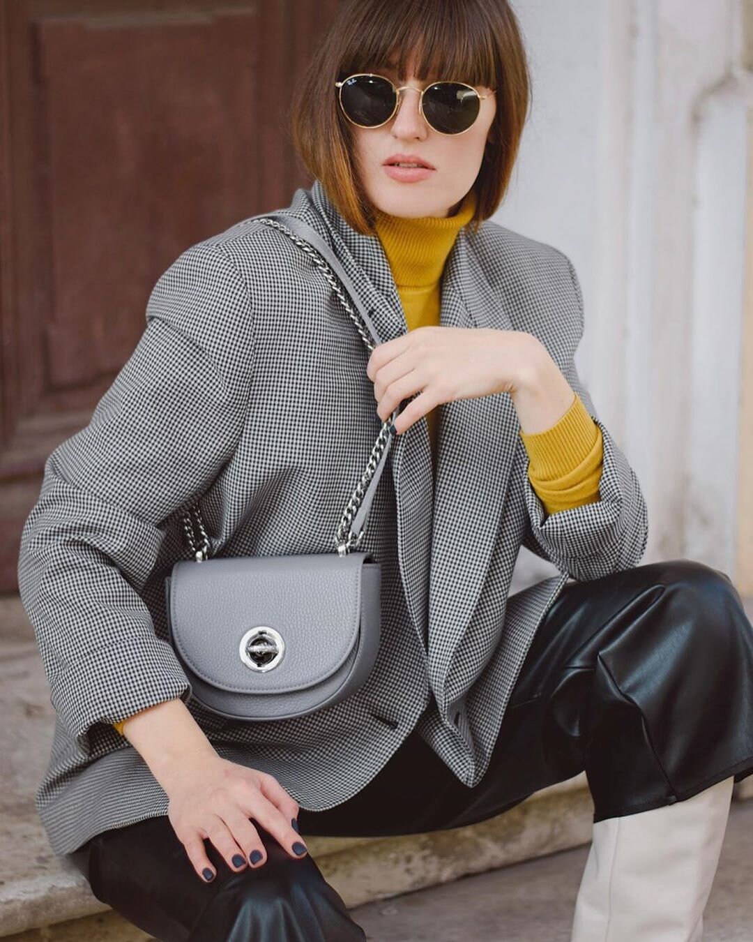 Leather Cross body Bag, Gray Leather Shoulder Bag, Women's Leather Crossbody Bag, Leather bag KF-3196