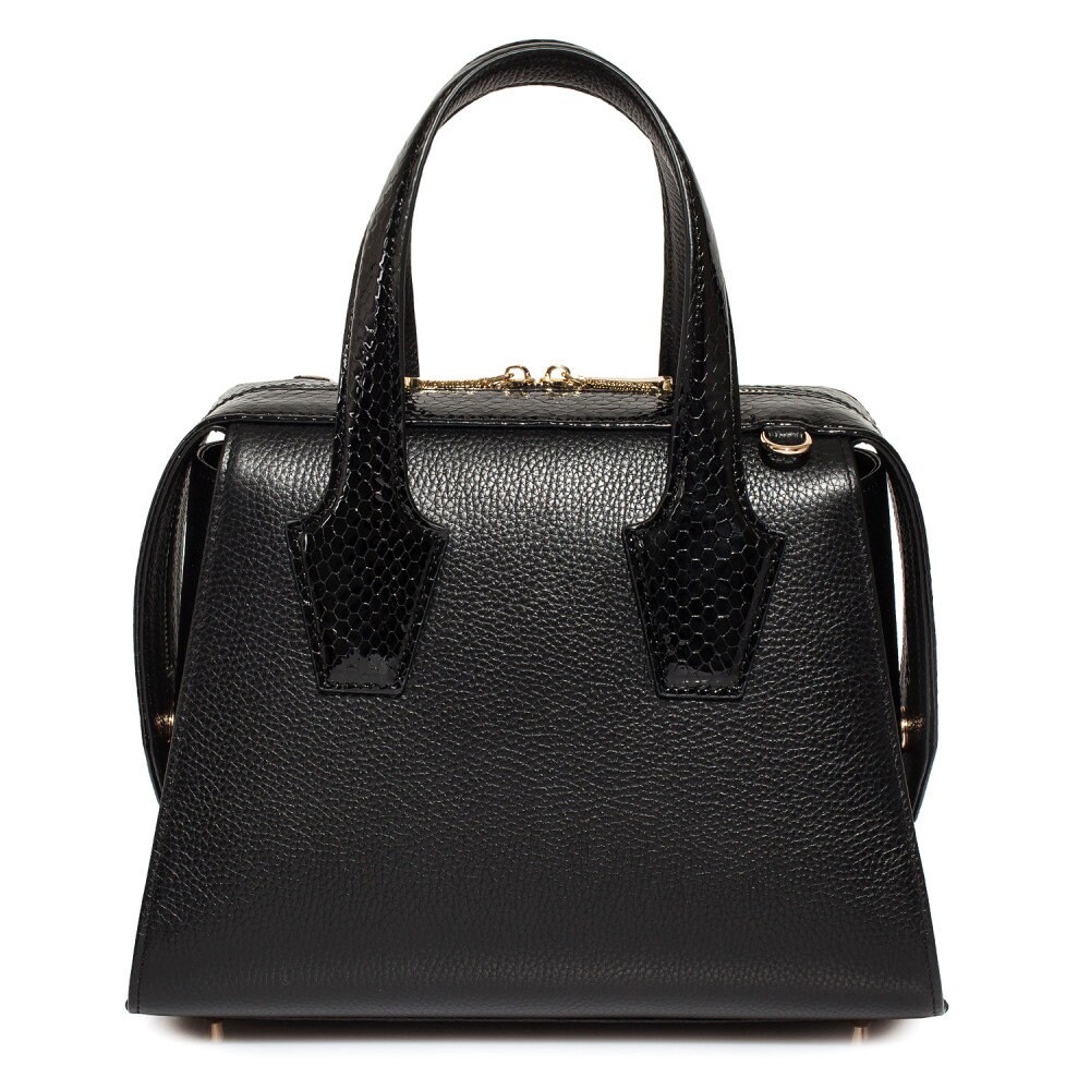 Leather Top Handle Bag, Black Leather Handbag Top Handle, Women's Leather Bag KF-4047