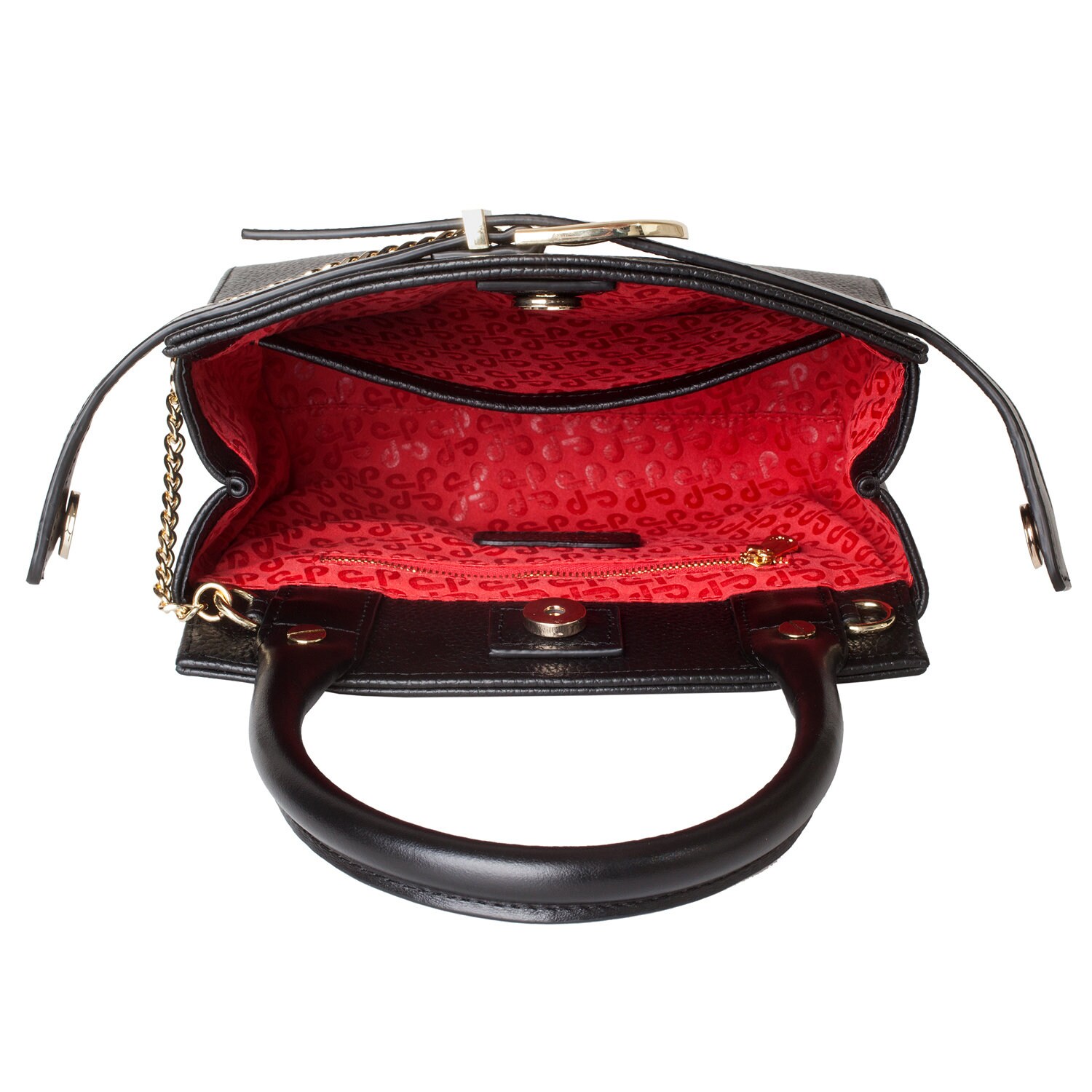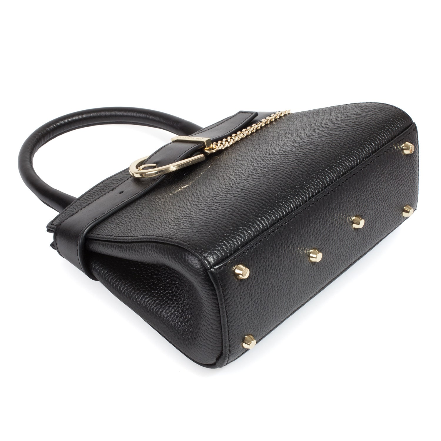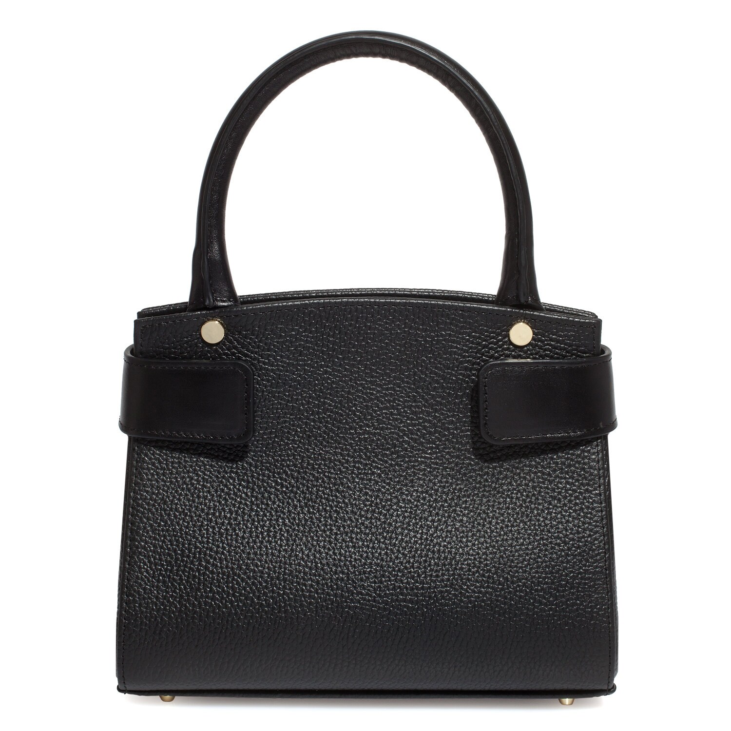 Women's leather bag made of genuine leather, hardware with galvanic coating and microfiber lining. The internal space of a bag is equipped with three compartments, one compartment and two side pockets, one with a zipper. §³loses with 3 magnet buttons. The bottom of the bag is protected with metal legs. There is a long handle that allows you to wear the bag on the shoulder. The kit also includes a storage bag.