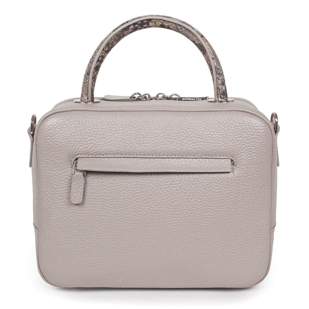 Gray beige genuine leather woman shoulder bag from ukrainian designer Katerina Fox. Fashionable and elegant modern bag KF for bright girls and women. This bag is able to attract attention and highlight your exquisite taste. The internal space of a bag is equipped with one spacious compartment and one zipper pocket. The bag is closed with a zipper. The length of the strap is adjustable. The kit also includes a storage bag.